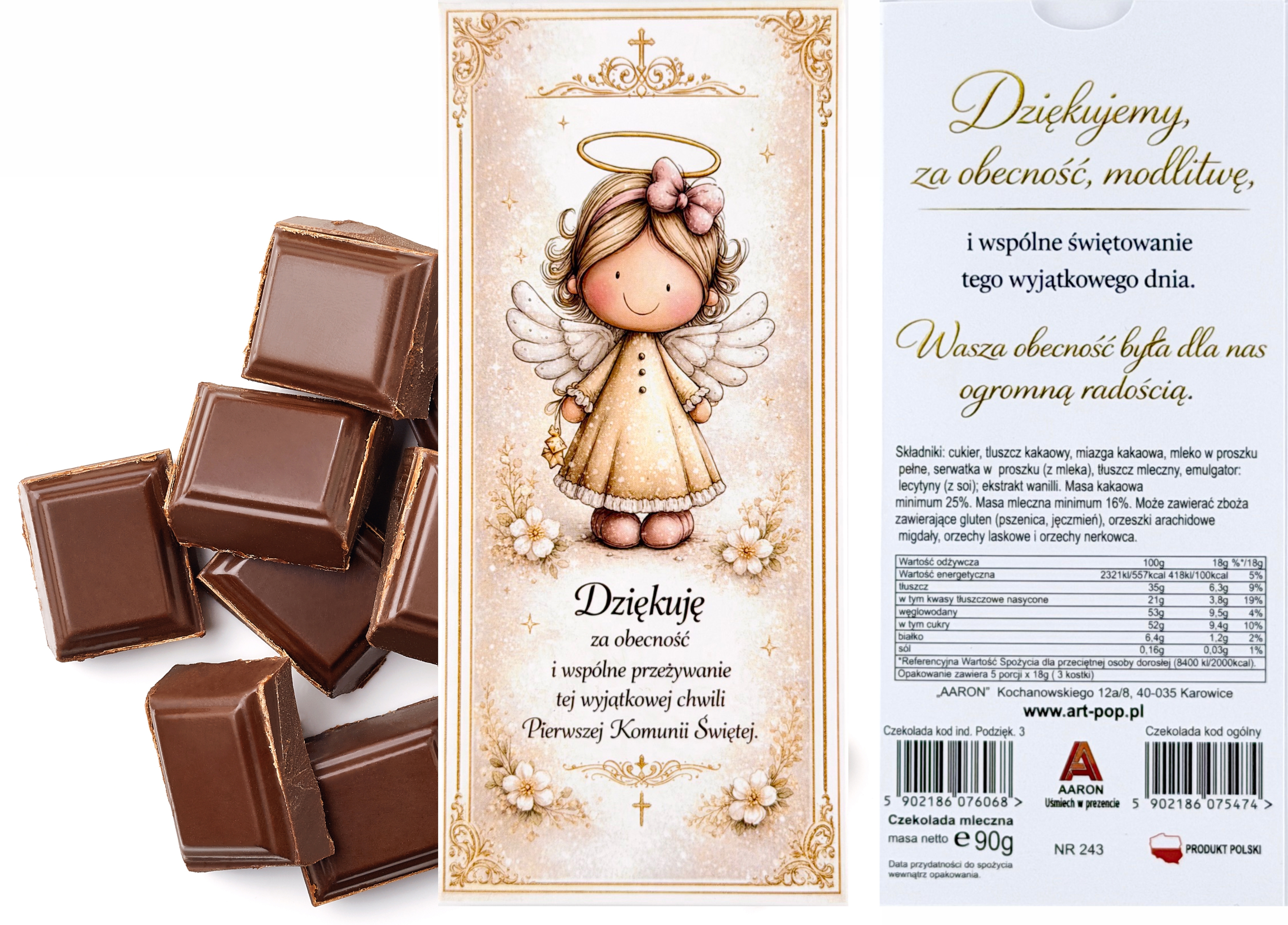 Czekolada okolicznościowa KOMUNIJNA komunia aniołek