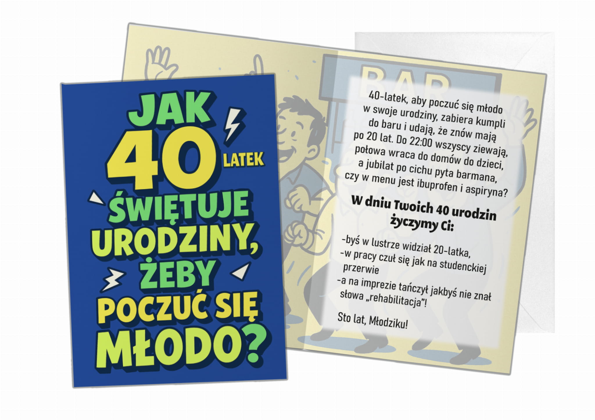 W środku wydrukowane życzenia z miejscem na dopisanie oraz podpisanie.