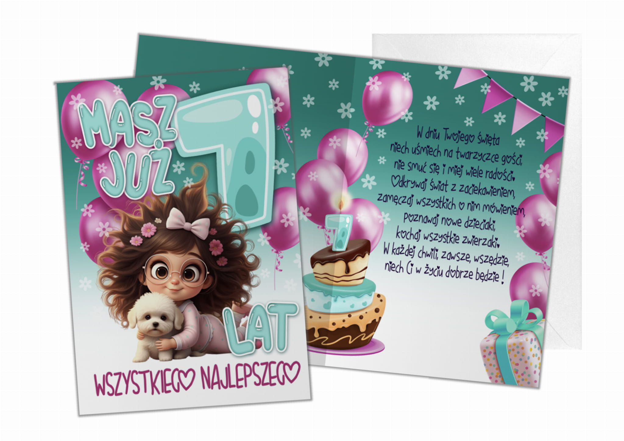 Kartka z życzeniami KARNET 7 LATKA XL