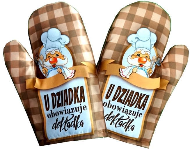 Rękawica kuchenna zapakowana w folię, idealnie nadaje się jako prezent główny jak i upominek (dodatek) do prezentu.