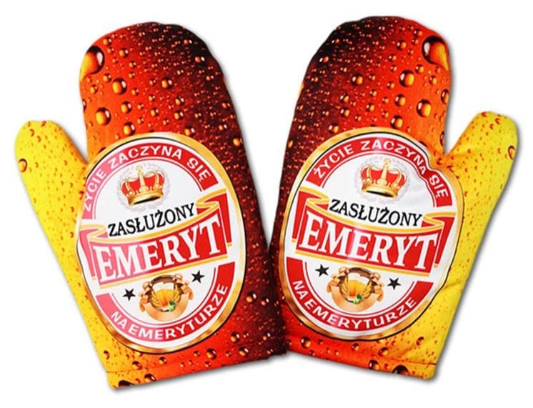 Rękawica kuchenna zapakowana w folię, idealnie nadaje się jako prezent główny jak i upominek (dodatek) do prezentu.